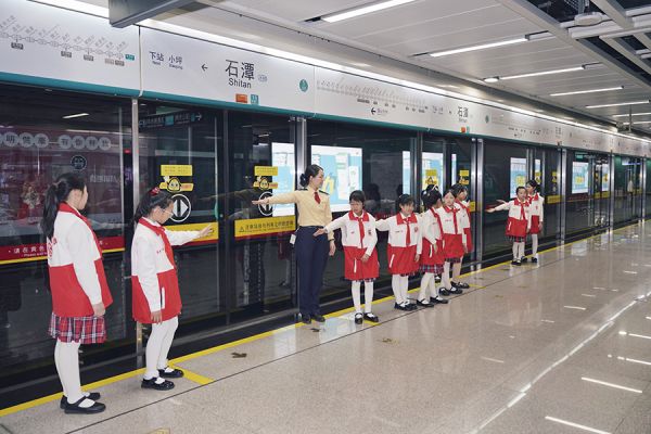 广州青年报讯(记者 孙雪晴 见习记者 陈天旭 通讯员 陈芳芳 梁锦辉 范小文)3月10日,少先队白云区工作委员会、广州地铁双方携手在广州白云站综合交通枢纽开展“红领巾爱奉献·志愿服务暖白云”雷锋月志愿服务主题实践活动,引导少先队员积极参与志愿服务,传承雷锋精神。本次活动先后在广州白云站和地铁石潭站开展,广州地铁为50余名师生带来一场精彩纷呈的地铁科普课、文明实践课和志愿服务体验课。