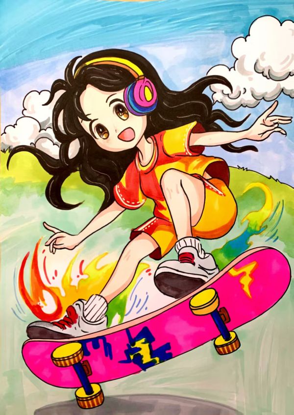 同学们,你们会玩滑板吗?你们有看过滑板比赛吗?是否觉得滑板与冲浪运动很像呢?让我来为你们解谜吧!滑板起源于20世纪50年代,是一项富有活力与观赏性的运动,由冲浪运动演变而来。滑板在20世纪80年代传入中国。1993年,开展了第一届全国滑板比赛。