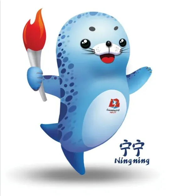 2013年,第十二届全运会在辽宁省举办。吉祥物“宁宁”是一只可爱的斑海豹,辽宁的渤海就有好多斑海豹呢!“宁宁”这个名字取自“辽宁、安宁”,传说中海豹能守护平安,它举着火炬,张开怀抱,像是在欢迎大家来参加全运会!