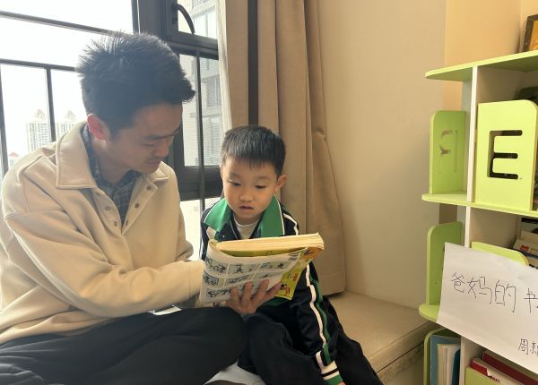 三年前,刚学写字不久的儿子,在闲置旧木柜上贴上“爸妈的书柜”五个不太规范的大字。此后,他常盼着周末父母能从这个书柜拿书,陪他一起阅读分享。一个周末的清晨,阳光洒进屋内,我们坐在飘窗一角,捧起书悠然阅读。儿子阅读的是心爱的《父与子》,他边读边笑,那情形像极了小时候的自己,紧紧依偎在母亲肩膀看父亲手绘漫画册的情景。