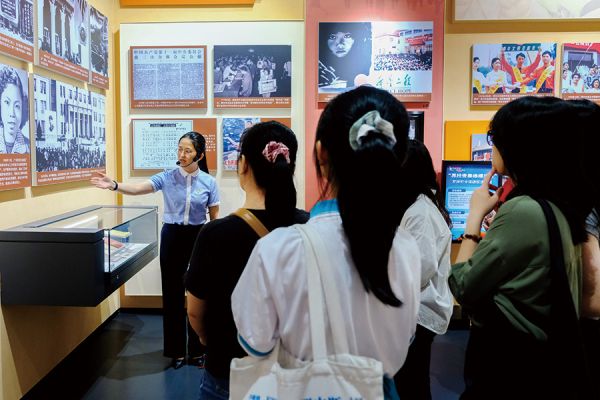 团一大纪念馆讲解员向游客讲述共青团百年发展历史 袁彬/摄