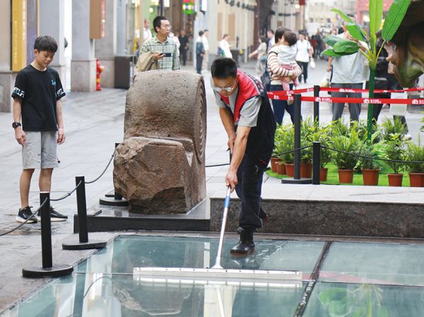 北京路文旅中心青年精心呵护千年古道遗址展览区 林乐峰/摄