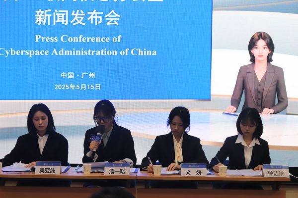 在“广州国际体育嘉年华”模拟发布会上,学生提出“全民全运嘉年华,商都商圈共欢腾”的发布主题,旨在焕发千年商都广州在体育赛事中的新活力。以“移动互联网未成年人模式”建设为发布主题的模拟新闻发布会上,AI数字人“网小信”深度解读未成年人模式的特色和亮点,从关心青少年身心健康、未成年人使用互联网的利弊出发,共同为青少年营造清朗网络空间。