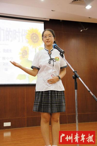 陈一璇,就读于广东广雅中学高三2班的,曾担任团支部书记、校团委副书记、广州市学生联合会第九届第六任组织部干部等职务,曾被评为荔湾区优秀共青团员、广州市优秀学生干部、广东省优秀学生干部。