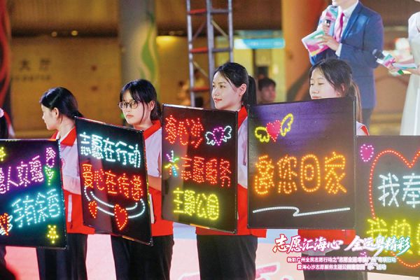 随着海心沙、广州塔和媒体港的三大屏幕同时亮起“志愿全运 幸福广州”“海心沙志愿服务主题公园邀您回‘家’”的标语,标志着活动正式启动。非遗传承人、快递小哥、网约车从业者、新媒体人、青少年事务社工等新兴领域青年代表上台作《我们都是广州青春合伙人》主题青春说,倡议各界志愿者参与十五运会和残特奥会城市志愿服务。