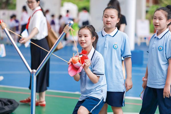 少先队员还以《七彩少年,舞动全城》《童心跃动燃星火 全运征程共奔赴》《武动少年志》等精彩演出,展现“强国有我”的决心。现场还举办了跃动嘉年华·童乐迎全运活动,少先队员在投壶、蹴鞠等运动项目中感受运动的快乐,为全运会加油助威。