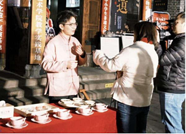 共创中心非遗行业委员会负责人、擂茶习俗青年非遗传承人文峰在讲述擂茶非遗技艺