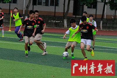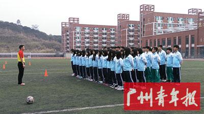 在执信中学,高一、高二均开设了足球选项课,每周两节足球课,为学校足球队输送了大量人才。学校已经组建初、高中足球训练队各一支,每周一、三、四下午由三位足球专项教师指导训练队训练。