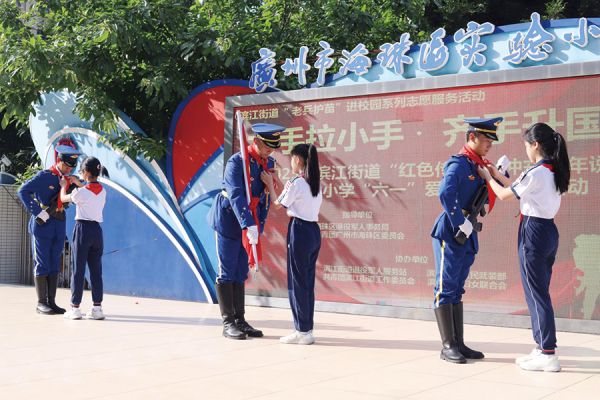 编者按:今年正值中国人民抗日战争胜利80周年,日前,滨江街道退役军人服务站联合广东省仲恺农业工程学院人民武装部、海珠区实验小学(富基校区)及相关单位和部门,共同开展“大手拉小手·齐手升国旗”爱国主义教育共建活动。