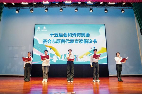 中山大学赛会志愿者代表宣读十五运会和残特奥会倡议书