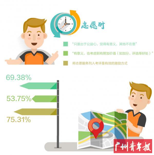 报告称,高达75.31%的受访者认为将志愿服务列入考评是有效的激励方式。广东一所高校在录取大一新生时,便在志愿服务方面提出了要求,称之为“公益时制度”:即大一入学前须完成30个小时的志愿服务,入学后每人每学年须至少完成50个小时的志愿服务;同时与评优、评奖直接挂钩,志愿服务既是必要条件,也作为加分项。该校大三学生陈淇表示,如果未完成则直接无缘奖学金和各项评优。张淇现在很感恩学校的这个制度,让他接触到了社会的不同群体,“其实很多人会在活动的过程中发生心态的转变,一开始抱着功利心进入,但后来真的喜欢上做志愿服务。”在他看来,纯粹抱着功利心进入公益,很难真正达到活动本来的预期目的,“参与者要完成长达50个小时的志愿活动,自身也会很痛苦;所以还是得先尝试喜欢上公益,当真的投入进去了,会慢慢发现评优评先只是活动的附加价值,真正的意义应该是志愿活动本身。”