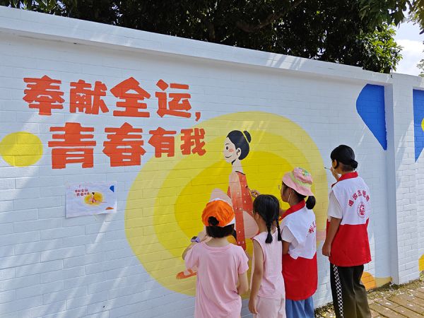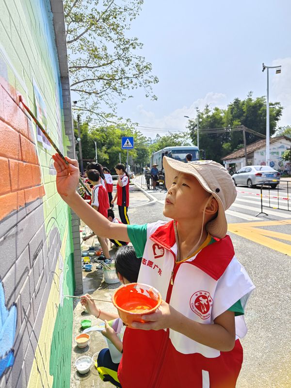 “志愿一夏·彩绘全运梦”乡村美化主题活动中,志愿者携手开展全运会主题彩绘活动,描绘和美乡村新貌。