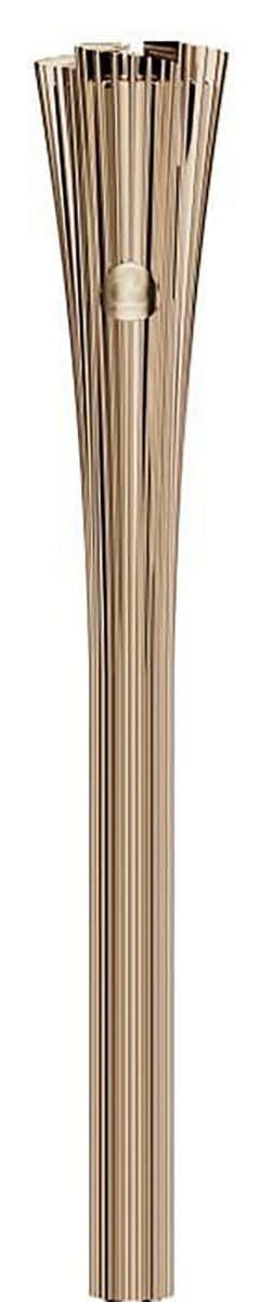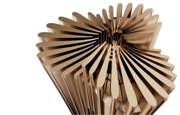 火炬金色外观与会徽“同心礼花”呼应,通过将平面会徽纵向拉伸旋转,呈“火树银花”绽放状。