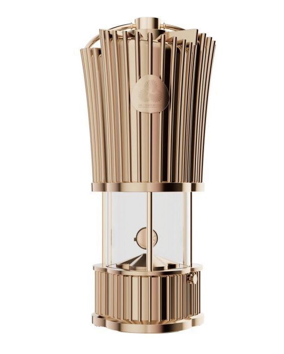 与火炬一同亮相的还有火种灯“星火筑梦”和火种盆“鼎盛同心”。火种灯线条与火炬一致,顶部延续波浪上升概念,点燃后光源有粒子散射效果;宛若无数运动员精神火花在此汇聚绽放。为前行之路提供恒久的精神指引。火种盆设计灵感源自“花觚”,承载了传统礼器的庄重典雅,又彰显了当代艺术的审美追求。顶部镂空设计,内层为燃烧室,火焰根部结构采用线性排列,使火焰始终聚集于中心以增强其观赏性,同时采用内凹的设计来提高火焰的抗风性能。