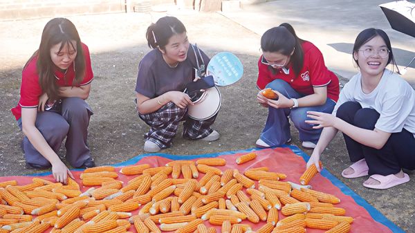玉米晾晒忙,大家乐开怀 广州职业技术大学 钟杰/摄