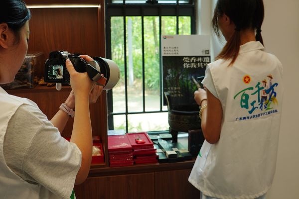 实践团成员在香博园拍摄“莞香”使用过程