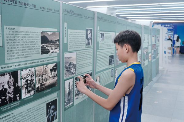 展览吸引了众多中小学生前来参观,他们在讲解员的引导下驻足观看一幅幅历史图片,聆听一段段跨越时空的英雄故事,在沉浸式的体验中感悟革命精神、汲取奋进力量。