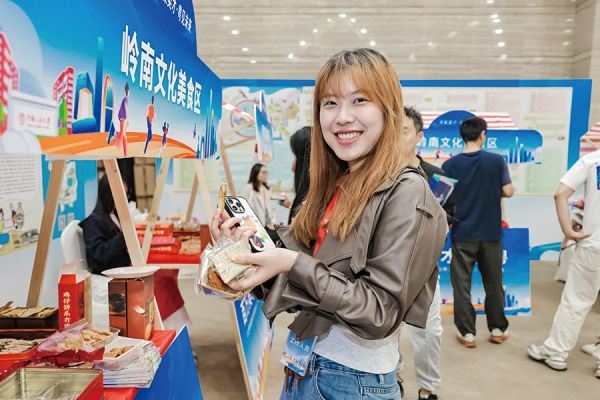 除了“硬核”岗位,广州更以“软实力”打动人心。招聘会现场特设了广府文化体验区,一幅长达13米的“广州早茶美食地图”吸引众多学生驻足。广州酒家、陶陶居、莲香楼等老字号点心琳琅满目,广州中医药大学第一附属医院带来的养生月饼和特色茶饮大受欢迎,广州市轻工技师学院带来的广绣、广彩非遗展示与海珠区少年宫的十五运会主题剪纸互动同步开展,让青年学子“边求职边叹茶”,沉浸式体验“食在广州”的烟火气息与人文底蕴。