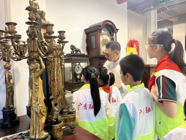 “广青融媒”红领巾小记者踏入永庆坊的广钟历史文化研究院木门,从悦耳的嘀嗒声里聆听广钟百年秘语。在广钟非遗传承人魏广文的带领下,小记者们切身体验广钟非遗魅力,于齿轮转动声中读懂工匠巧思与文明薪传。