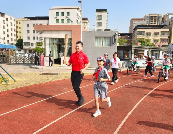 参与此次接力传递的潘菀灵兴奋地表示:“能成为全运火炬象征性传递的小火炬手,我的心情无比激动。当我手握火炬,我感受到的不仅是全运的激情,更是沉甸甸的红色少年梦想。”校国旗队员曾宪昱则表示:“作为学校国旗队队员,我觉得今天的升旗特别有意义,望着国旗冉冉升起,我的心里满是骄傲,当全运火炬在师生手中传递,那火炬载着红色基因与拼搏精神,看得我格外振奋。我要把这份热情放进学习和运动里,做敢拼敢闯的红领巾。”