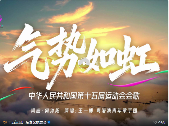 不知为何,你发现你不由自主地唱起了“冲冲冲,看我气势如虹,让那梦想升空,跨越巅峰”这句朗朗上口的歌词。这“洗脑”的旋律正源自十五运会的会歌《气势如虹》。