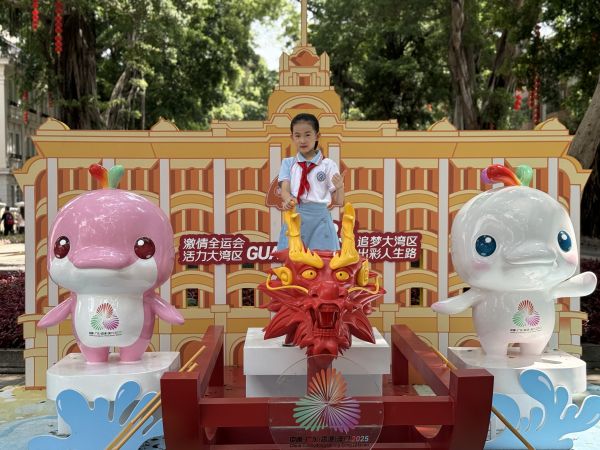 “喜洋洋”与“乐融融”的可爱魅力不容小觑(qù),吸引不少市民朋友到此拍照打卡。“在地标设置打卡点能吸引更多人关注全运盛会,感受广州活力”从武汉到广州旅游的沈阿姨专门到此探访两位吉祥物。市民冯阿姨则称赞该打卡点是传统文化和现代美学完美交融的创新。(小记者何娅玄报道)