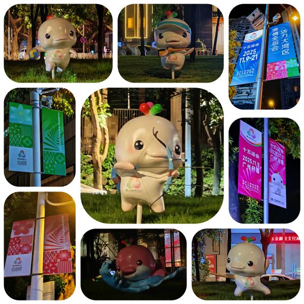 据悉,上下九、白鹅潭、陈家祠、海珠湿地公园等广州地标也以“盛装”迎全运,市民朋友可在广州地标处搜寻到“喜洋洋”与“乐融融”憨态可掬的身影,与它们合影“打卡”,感受广州的全运“氛围感”。