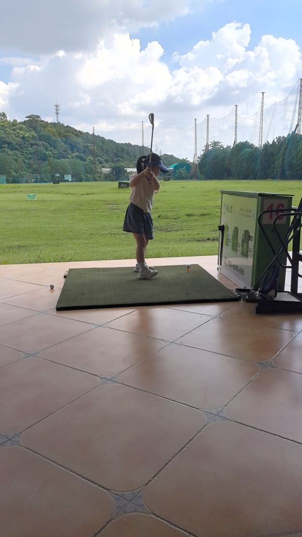 当我第一次见到高尔夫球场时,绿油油的草地勾起了我的好奇。教练递给我一根亮亮的球杆,让我打白色的小球,这让我觉得这项运动简单又好玩。我用力一挥——“啪”,草就这样飞起来了,小球却还在原地打转转,像在笑话我。教练耐心地告诫我说:“握杆要轻,要如抱着一只小兔子那般温柔”他拉着我的手一起挥杆,小球突然“嗖”地飞了出去,仿佛在蓝天画出一道彩虹。我发现要让高尔夫球在空中跳舞,不需要用很大的力气呀!有一次我想帮球“飞得更高”,偷偷把它放在小土堆上。到挥杆时,我却“扑通”一声坐到草坪上,小球滚进洞里了,大家都笑我这是“坐地进洞”。