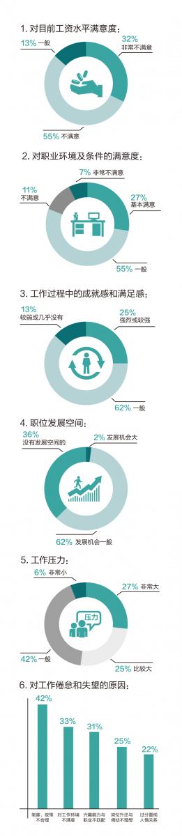 事实上,大多数青年公务员对职业环境及条件的满意度一般,数据显示:“27%的青年公务员表示基本满意,55%表示一般,11%表示不满意,7%表示非常不满意。”