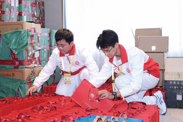 口岸迎送服务组运用多语言专业技能为来自全球的嘉宾细致讲解会议行程安排,生动介绍广州历史底蕴与风土人情;协助嘉宾报到组逐份核查会议材料与嘉宾证件,当嘉宾抵达签到时迅速调取对应资料,高效完成注册流程;后勤组以高效节奏分拣嘉宾伴手礼及各类物资,细致完成伴手礼的上门装袋与配发;会场指引组全程在岗护航,入口安检处主动协助嘉宾有序通过安检设备,会场内逐一对接嘉宾信息,引导嘉宾入座,遇到疑问及时回应、遇到需求快速响应;会务礼宾团队协助现场布置,严谨分类、精准配发各类会议材料;交通保障团队坚守会场周边的马路指引点位,引导乘车嘉宾沿指定通道有序前往会场入口。