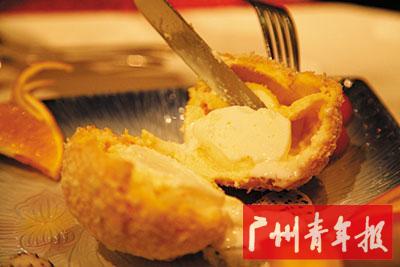 说起另一家驰名的、位于北京路的美利权冰室,现属于鸿星海鲜饮食集团。据集团管委会工作人员何泳仪介绍,美利权冰室的雪糕沿用一直以来的独特配方,制作出来的雪糕十分幼滑,记者品尝了几款招牌雪糕,最让人惊喜的要数炸雪糕。从事甜品制作近 10年的文永术师傅告诉记者,“炸雪糕难度在于对油温的控制,用蛋糕包住雪糕球,投入油镬时需要控制好油温以及炸的时间。”炸雪糕内冷外热,香草味雪糕与蛋味浓郁的蛋糕在口腔中融合回荡,口感十分独特,虽然是炸物,但一样吃得凉入心扉。