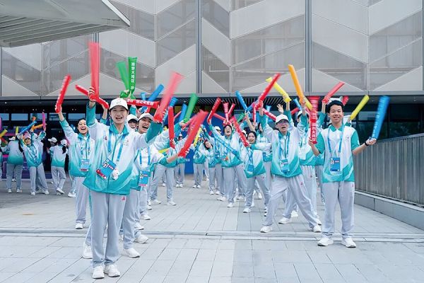 当每天最后一场比赛落幕,华农“小海豚”自发组织无需上岗的志愿者排成两列,用“拜拜”仪式欢送观众,既传递他们的热情名片,也为自己呐喊充电。