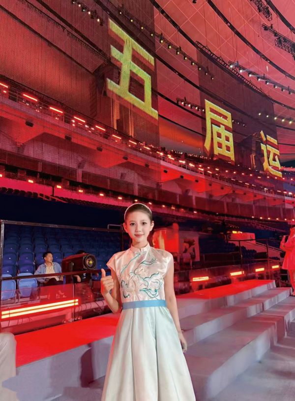 旅程中最难忘的篇章,无疑是亲身参与十五运会开幕式的排练与演出。开幕式当晚,站在恢宏的舞台中央,我不仅是表演者,更是一名屏住呼吸的“小记者”。台前,是科技与艺术交织的视觉史诗;幕后,是无数工作人员与志愿者被汗水浸湿仍微笑的面庞。我记录下运动员入场的豪迈,也留住了“小海豚”志愿者为小演员整理衣角的温柔。我深深体会到:这场盛会最美的样子,是由台前的光芒和幕后的奉献共同织就。