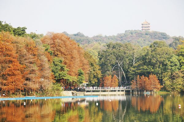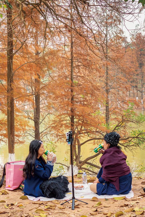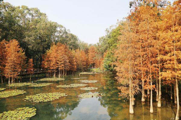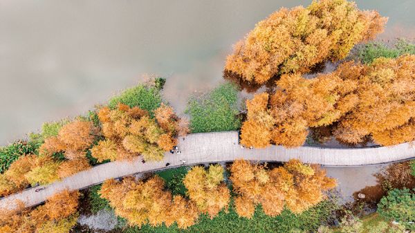 每年1月,落羽杉便陆续“上色”,迎来最佳观赏期。在广州海珠国家湿地公园,大片棕红、焦糖色的枝叶层层浸染,飞鸟掠过水面,点缀杉林与天空,化作一幅流动的水彩画卷;在黄埔九龙湖公园,落羽杉层层叠叠、色彩斑斓,焦糖色、枫叶橘、落日金交织,仿佛打翻的调色盘,形成渐变景观;在番禺大夫山森林公园,上千株落羽杉密集分布,随手一拍便是冬日爆款大片……市民游客在湖光林影间放松身心,感受自然之美。