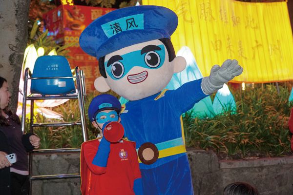 与此同时,清风侠Cosplay活动受到不少小朋友们的青睐。在此次活动中,花都区委宣传部、花都区花城街组建了一支清风侠Cosplay小分队前来助阵。现场也有备好的清风侠道具服饰,小朋友们可以穿上清风侠道具服饰,装扮成小清风侠,进行拍照打卡,参与集章活动。“清风侠,冲冲冲!”小朋友们穿上清风侠的服饰,热情高涨,瞬间化身守护网络清朗的小英雄,与清风侠人偶一起,号召广大游客加入清风行动,成为当晚另一组闪亮的明星。