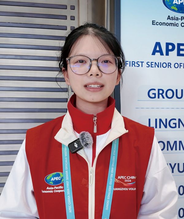 程海心:在向外宾介绍会议相关状况时,我也会一并介绍广州的风景名胜、人文古迹,让嘉宾了解羊城风貌。在与嘉宾对话的过程中,我不仅提升了口语能力,也以专业的能力、热情的态度,让来自世界各地的嘉宾感受中国青年积极向上的精神风貌。
