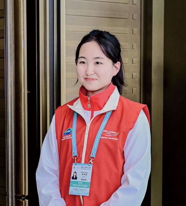 沈亭延:在岗位上,我接待了许多来自世界各地的嘉宾。这段经历不仅锻炼了我的意志力,也让我在实践中学习并掌握了许多礼仪与跨文化传播方面的知识。同时,我的外语听力与口语能力也在实际运用中得到提升,逐渐变得更加自信、更加勇敢。