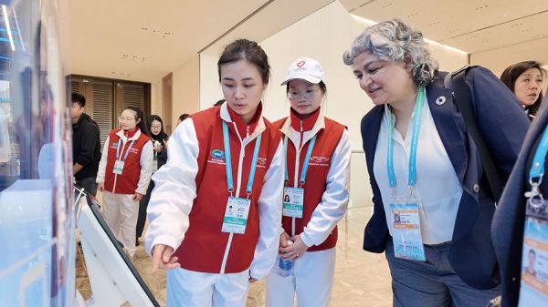 在城市志愿者中,还有一群特别的“广府文化使者”——42名主题线路志愿者与10名珠江夜游志愿者,负责在中轴创新、城央生态、广府文脉、循环发展、绿美乡村等5条参访线路上提供专业双语指引导赏服务。他们以参访点原有的志愿服务岗为基础,紧扣所属点位的核心主题提炼亮点、深化特色,不断注入具有广州本土风情与文化特质的志愿元素,让参会嘉宾在参观中感受广州传统与现代交融的多元魅力。他们就像一个个“会呼吸”的文化触点,将官方议程之外的广州,变成了一本可沉浸、可互动、充满温情的立体书。
