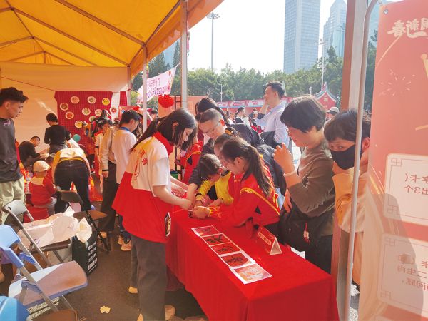 与此同时,“红领巾集市”系列活动也在花市现场蓬勃展开。作为系列活动的重要组成部分,骏景小学少先队员自主策划的“中国龙”主题日活动吸引了广泛关注。活动现场,“龙韵非遗快闪秀”以宣读倡议、武术、舞龙及乐器演奏等形式,生动展现传统文化魅力,吸引众多市民驻足。随后的“非遗龙匠体验营”中,DIY利是封、非遗问答等互动环节,让少先队员在亲手体验中进一步感受传统文化的深厚内涵。