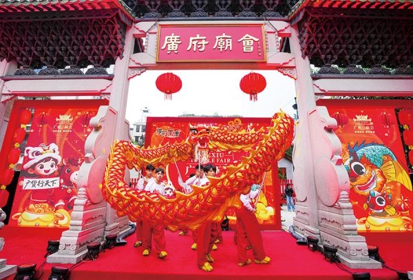 2026年广府庙会开幕展演以“古韵启城·遇见广府”“潮涌湾区·活力广府”“龙腾鳌跃·齐聚庙会”3大篇章展现精湛的艺术编排与深厚的情感表达。