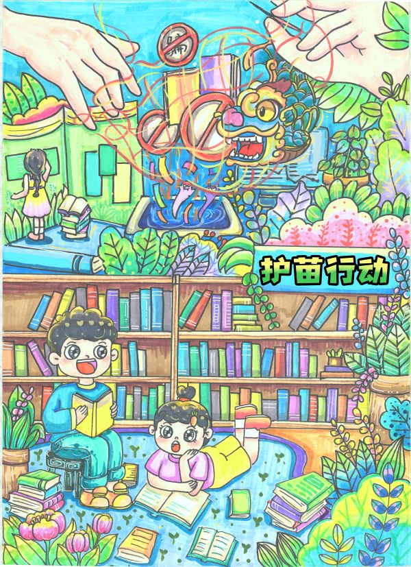 清风侠是广州市“扫黄打非”办公室推出的护苗动漫IP(Intellectual Property:即“知识产权”),自2020年以来,以多种形式传递“绿色阅读、文明上网”理念,守护未成年人健康成长。一批同学拿起画笔,将心中的清风侠与护苗心愿绘于纸上,下面就让我们一同欣赏这些作品。