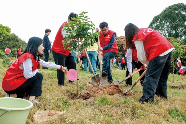 志愿者携手共植新绿