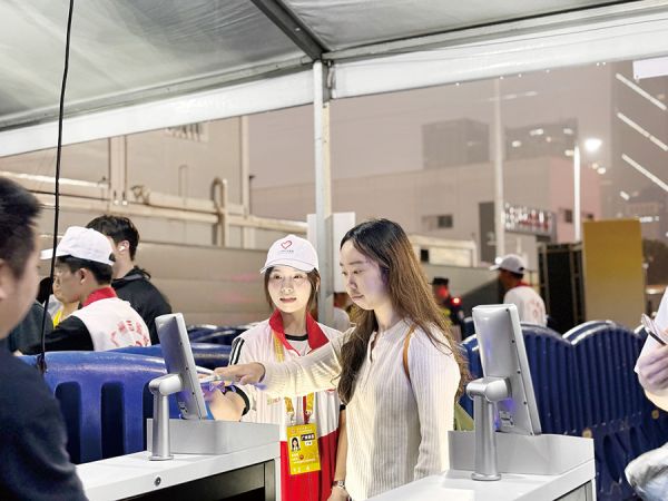 票务查验岗位上,志愿者们严格按规范核对每一位入场观众的门票信息,耐心解答观众关于入场须知、座位指引的疑问,细致排查入场隐患。外场分流区志愿者分工明确、配合默契,顶着人流压力有序引导排队入场、疏导拥堵、维护秩序与安全。他们穿梭人群反复指引、帮扶老幼,以温暖高效服务化解急躁、保障顺畅,让观众轻松入场安心观赛。