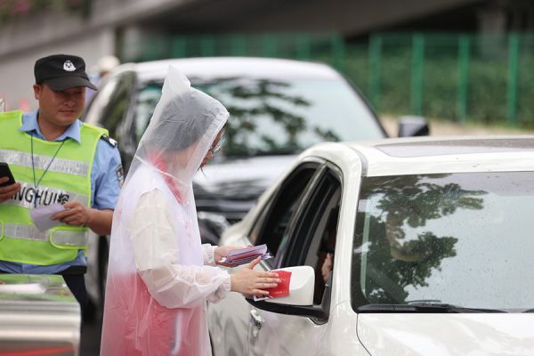 雨中坚守志愿岗位