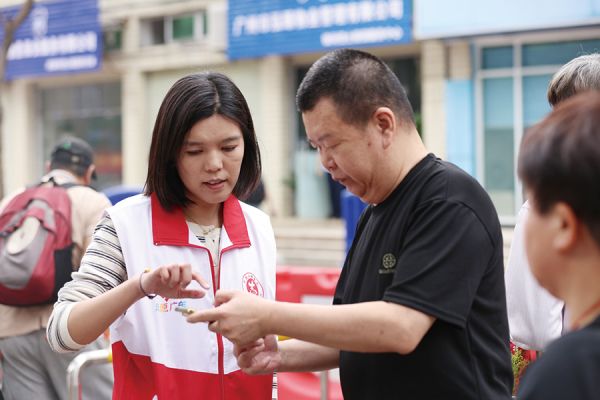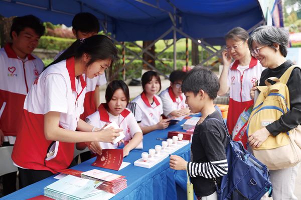 志愿者为青少年打卡集章