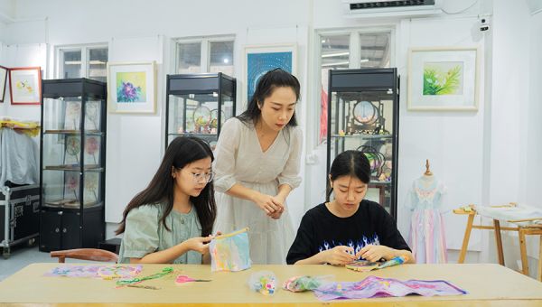 “能够带领更多人感受广绣的魅力让我觉得很开心也很自豪。教学工作也一直反哺着我的创作,青少年思维纯粹、想象力强,他们的创作思路、审美观念也给了我许多启发。”谭靖榆说。