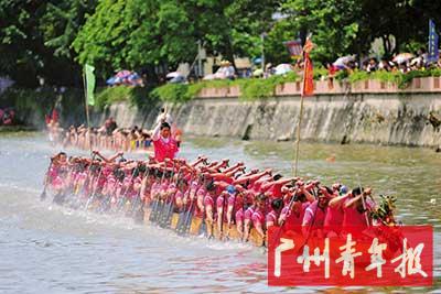 端午佳节,龙舟竞渡热烈上演。上周末,随着一声锣响,车陂龙舟赛在车陂涌拉开战幕,河涌两岸挤满人群热切期待。据介绍,车陂村现有龙舟近50艘,分归村内11个姓氏的12个龙船协会,每年农历四月底,每个龙船协会都会从自家几条龙船中精选1条出来参加车陂龙舟赛。
