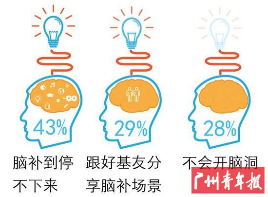 再来看一下大家的脑洞有多大。在脑补“污”的场景这方面,43%的同学选择了会自嗨,脑补到停不下来,自动自觉地开起了小火车,同学们,该吃药啦。29%的同学表示会跟好基友分享意味深长内涵十足的脑补场景,28%的人表示不会开脑洞,看完节目就罢了。