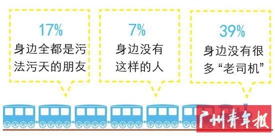 问卷还调查了一下同学们身边的“老司机”,39%的人表示一般般,身边没有很多,37%的人表示身边污力滔滔的朋友真的不少,有17%的人表示身边全都是脑洞大开污法污天的朋友,只有7%的朋友表示身边没有这样的人。