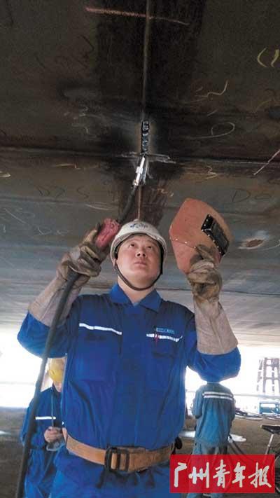 80后的广船国际总装二部搭载课船坞搭载工段副工长杨乐峰从事电焊已经13年,当初为减轻家庭负担,得知技术工人收入还不错,就果断选择来到广船国际。“除了待遇,造船行业能学很多东西,拓展不少见识。”杨乐峰称。